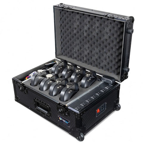 Kit di 8 par led con dmx wireless, alimentati a batteria, con magnete EZMAG™ incluso e flight case per il trasporto e ricarica - ogni par ha una potenza di 5×12 Watt di tipo RGBWA-UV in grado di riprodurre tutti i colori possibili - utilizza il par a batteria fino a 9 ore con un singolo colore e ricarica in 2,5 ore l'unità - ogni par è dotato di ricevitore e trasmettitore wireless a 2,4GHZ, che permette di collegare i par fra di loro - è presente in confezione un telecomando IR per controllare le funzioni del par a distanza – grazie alla connessione Wi-Fi è possibile controllare i par attraverso il proprio dispositivo iOS in comodità – ogni unità può essere utilizzata come luce di tipo uplight o, grazie al supporto magnetico, può essere appesa in pochi istanti - utilizza il flight case incluso in confezione per trasportare e ricaricare gli 8 par in comodità Kit di 8 par led con dmx wireless, alimentati a batteria, con magnete EZMAG™ incluso e flight case per il trasporto e ricarica - ogni par ha una potenza di 5×12 Watt di tipo RGBWA-UV in grado di riprodurre tutti i colori possibili - utilizza il par a batteria fino a 9 ore con un singolo colore e ricarica in 2,5 ore l'unità - ogni par è dotato di ricevitore e trasmettitore wireless a 2,4GHZ, che permette di collegare i par fra di loro - è presente in confezione un telecomando IR per controllare le funzioni del par a distanza – grazie alla connessione Wi-Fi è possibile controllare i par attraverso il proprio dispositivo iOS in comodità – ogni unità può essere utilizzata come luce di tipo uplight o, grazie al supporto magnetico, può essere appesa in pochi istanti - utilizza il flight case incluso in confezione per trasportare e ricaricare gli 8 par in comodità